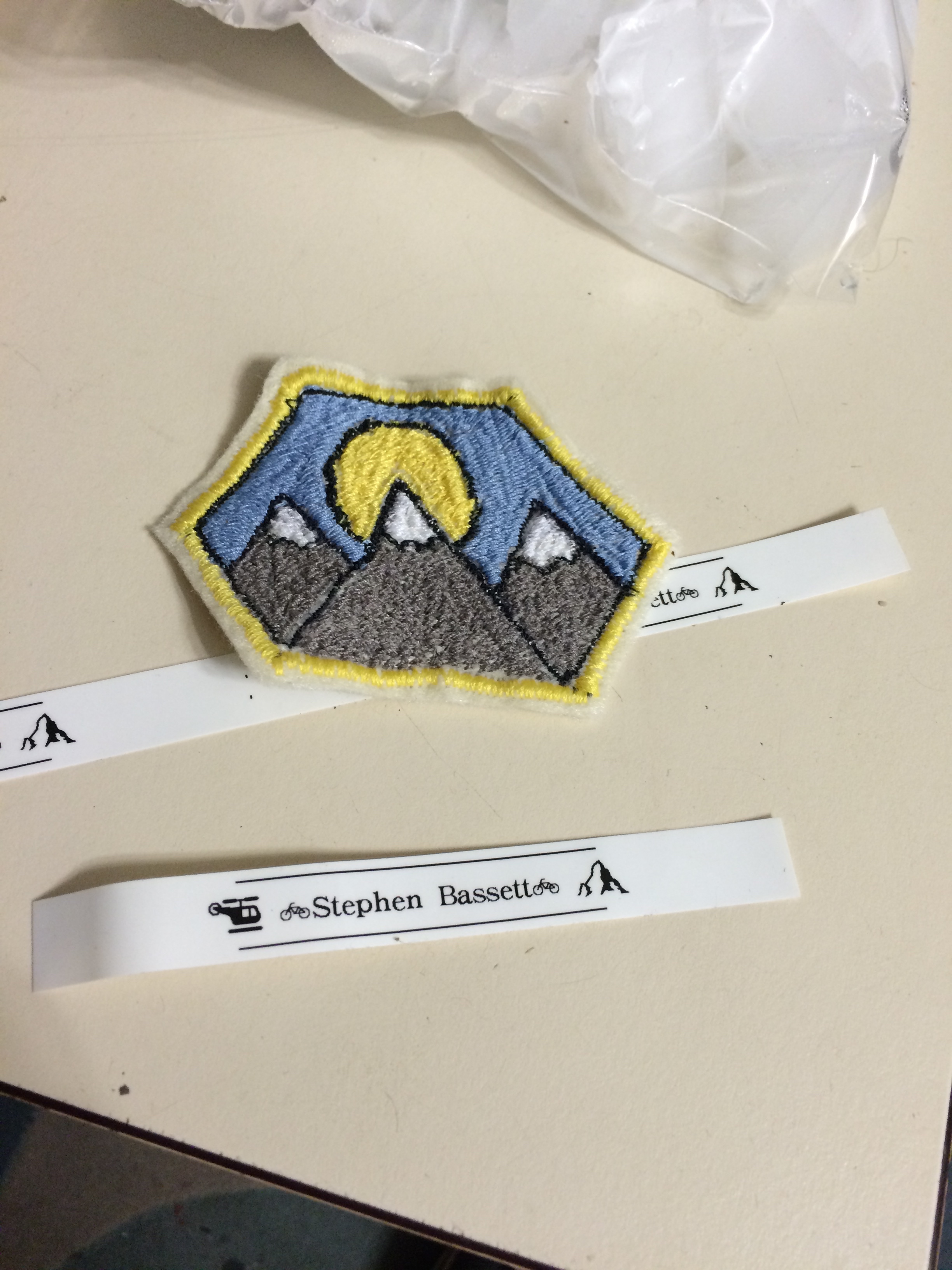 My friend Luke helped me out with some name stickers for my helmets and a handmade patch.